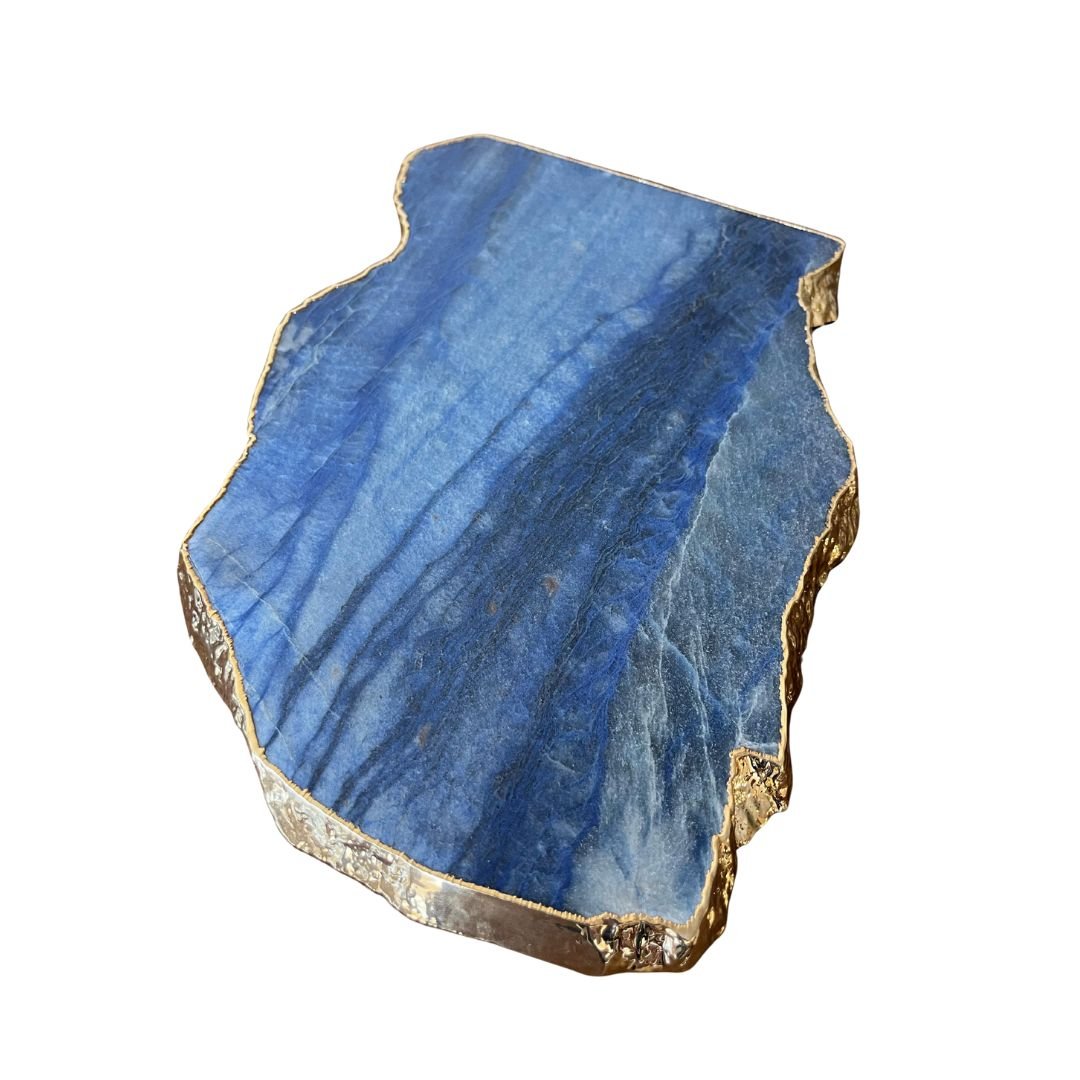 Bandeja em pedra quartzo azul com bordas banhada a ouro