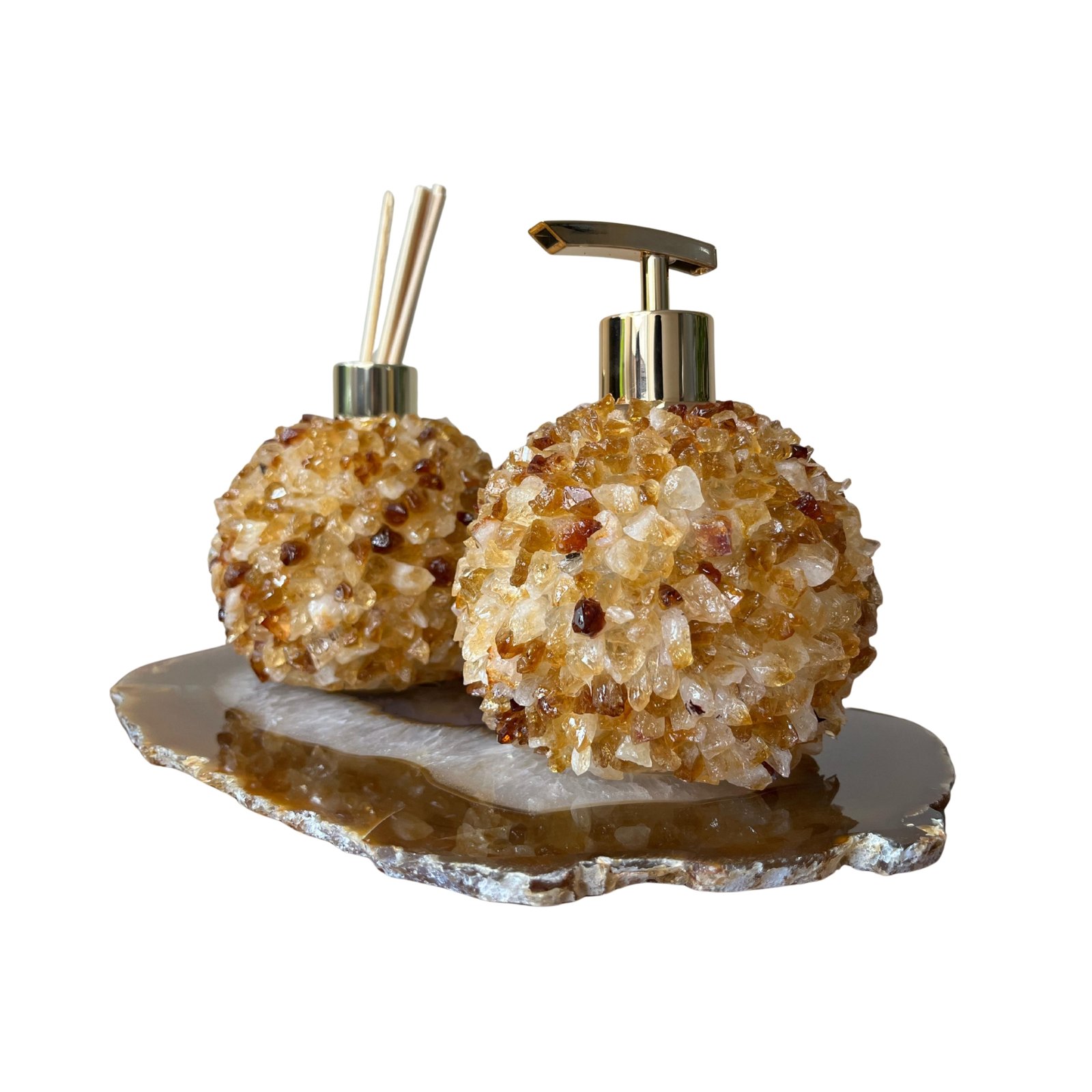 Kit Lavabo – Saboneteira, difusor em citrino e bandeja em ágata