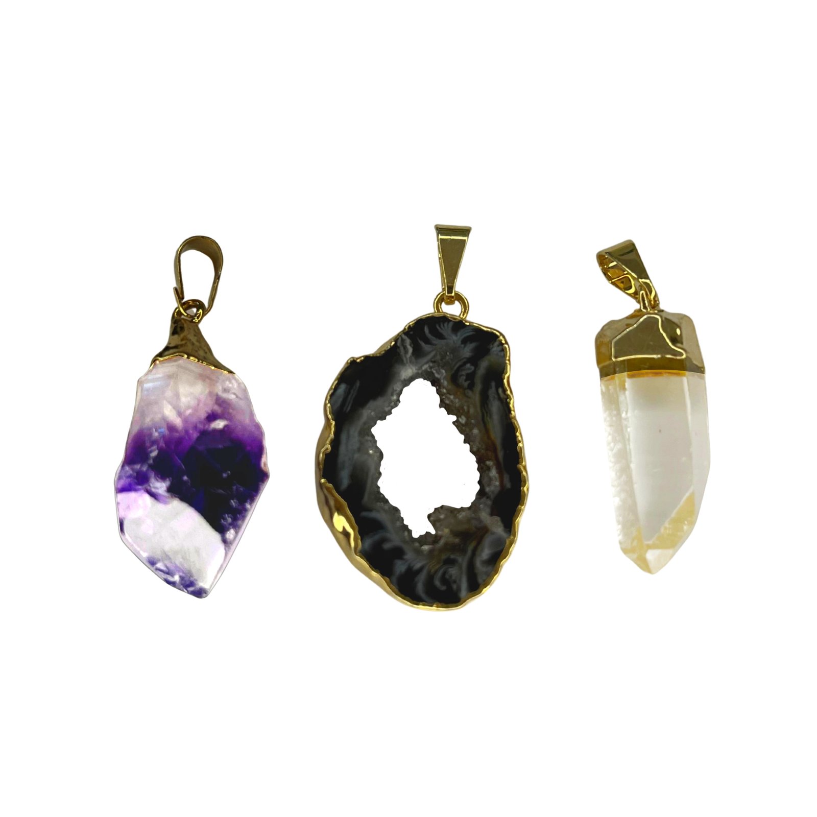 Kit Pingentes em pedra Ametista, Ágata e Cristal.