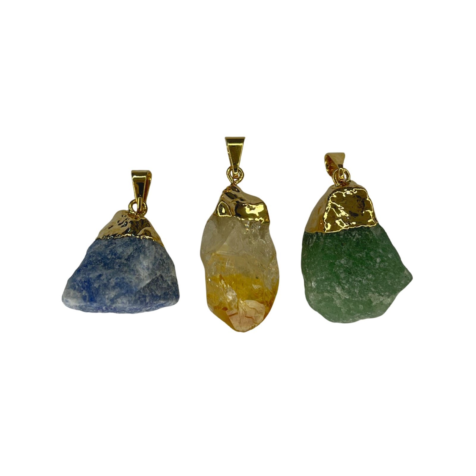 Kit Pingentes em pedra Quartzo Azul, Citrino e Quartzo Verde.