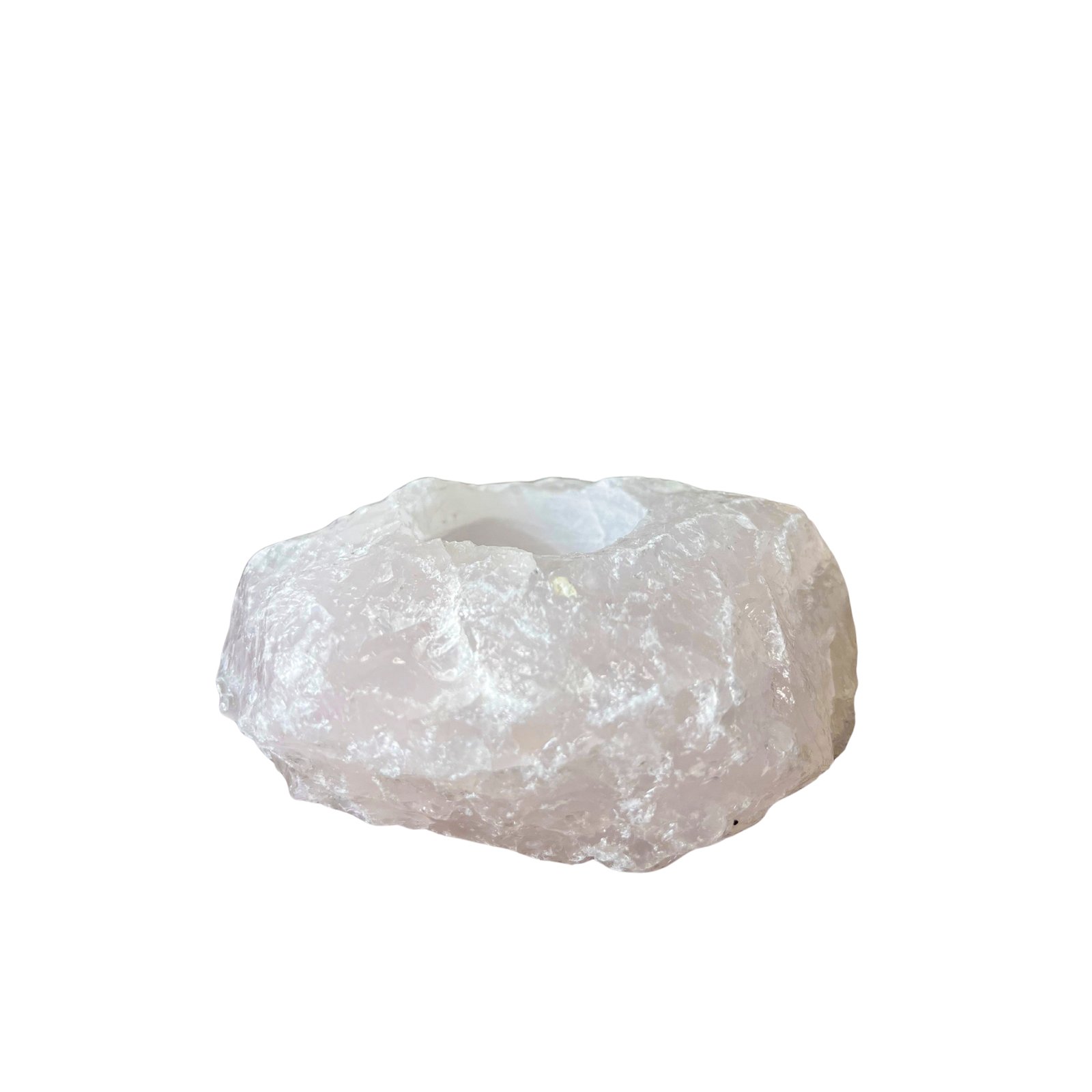 Porta-vela em quartzo rosa